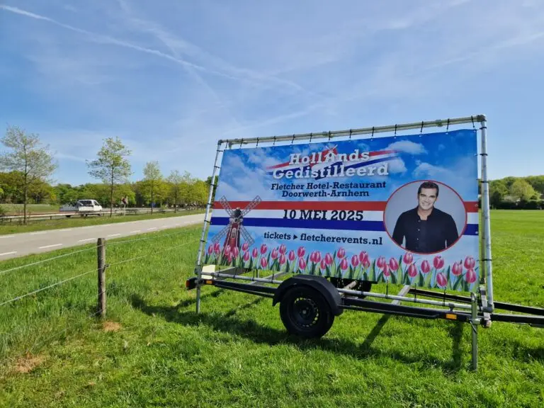 Met de reclameaanhanger van Produlux trek je direct de aandacht! Breng jouw evenement, lokale actie, bouwproject of aanbieding groot in beeld met ons mobiele spandoekframe.